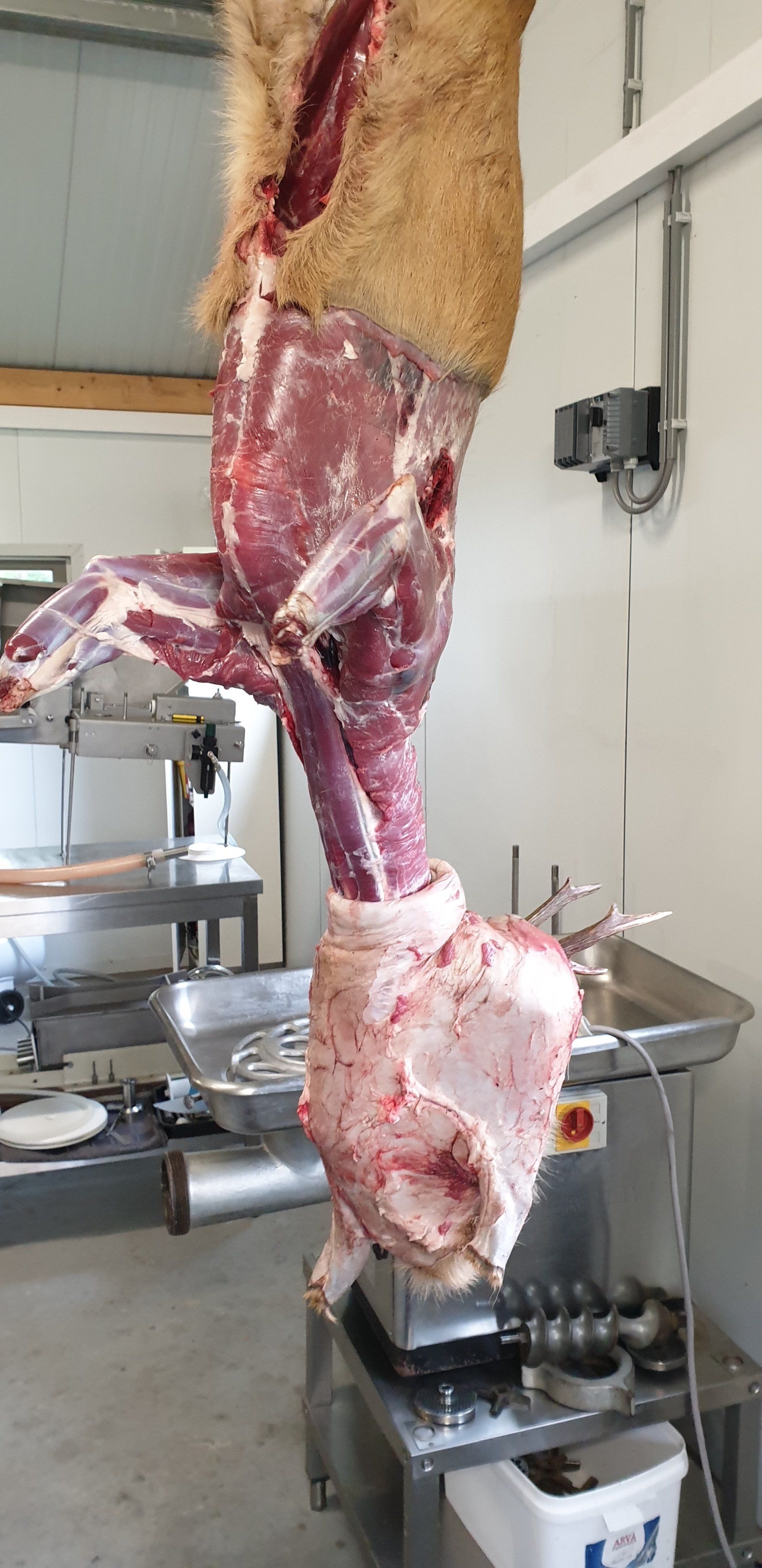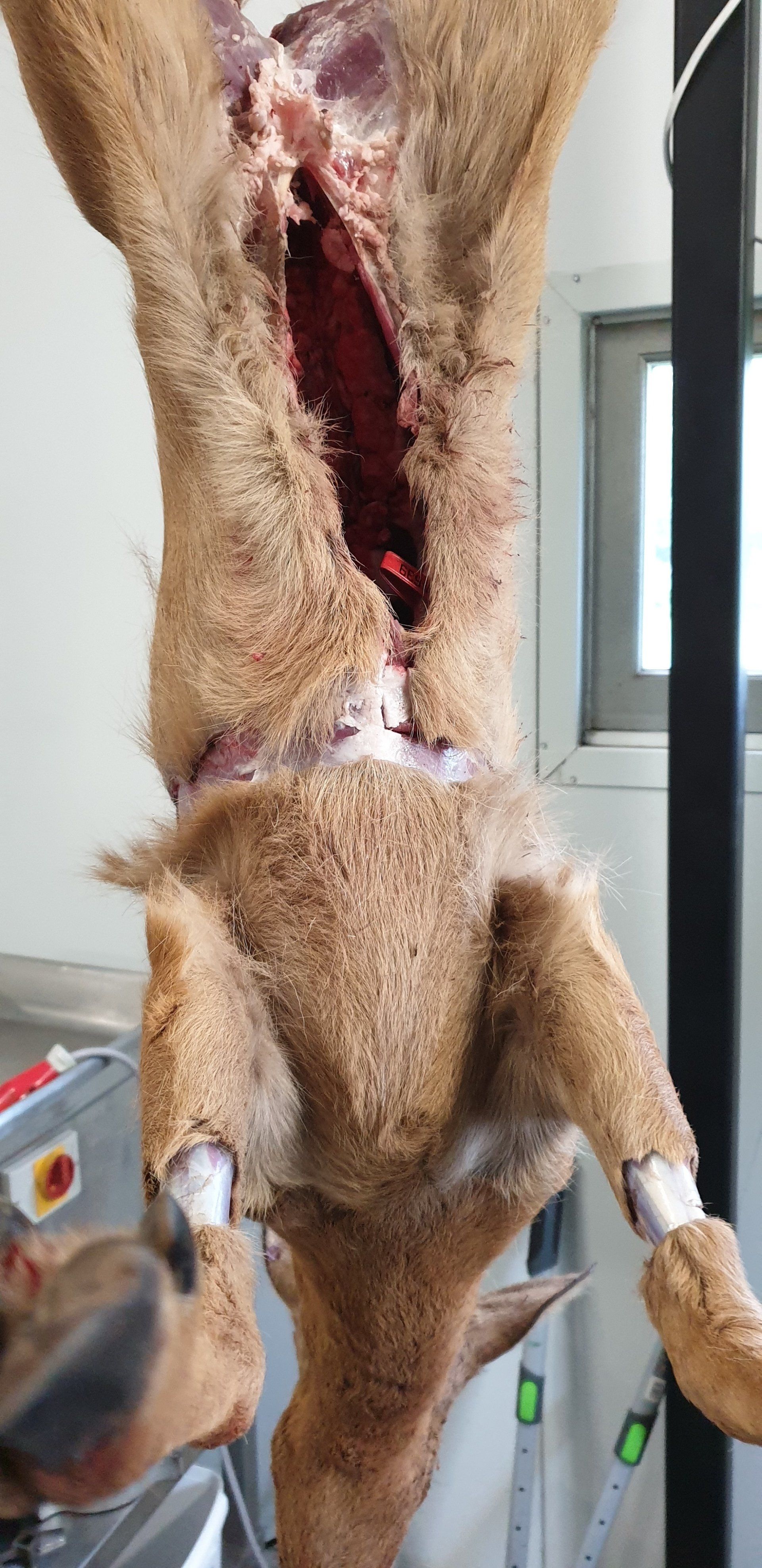 Het belangrijkste is dat het dier niet tot de keel losgesneden word, maar tot het ribbenkast.